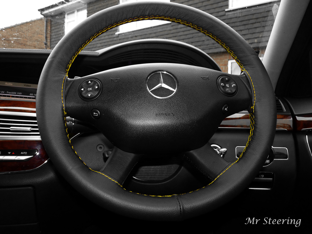 FITS MERCEDES-BENZ VITO MK2 W639 2003-2014 GENUINE ITALIAN CUSTOM MADE LEATHER STEERING WHEEL COVER WITH YELLOW STITCHING