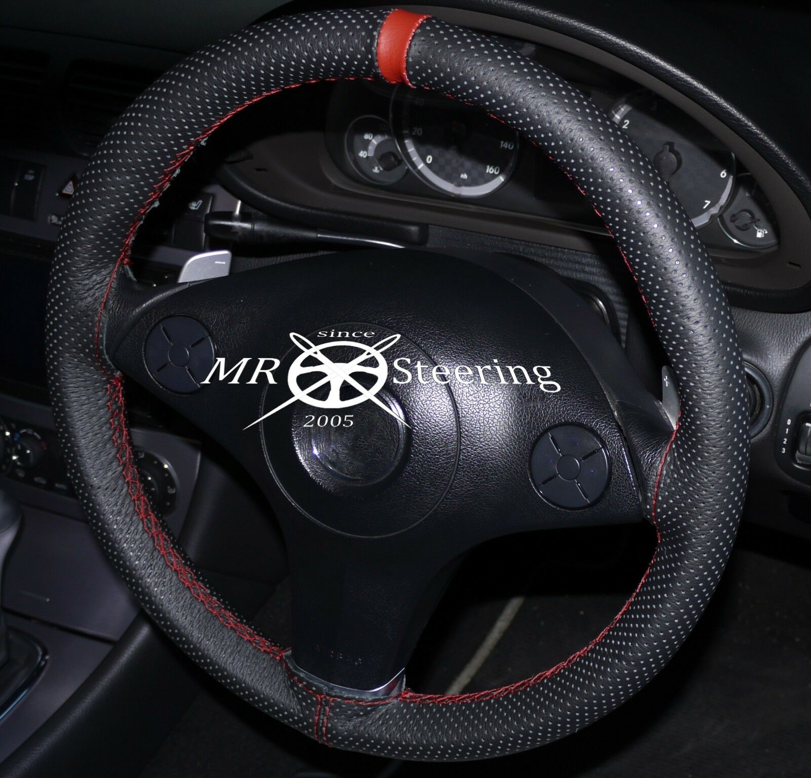 VOLKSWAGEN CADDY MK3 FACELIFT 2010+ GENUINE BLACK PERFORATED LEATHER + RED STRAP STEERING WHEEL COVER WITH RED STITCHING