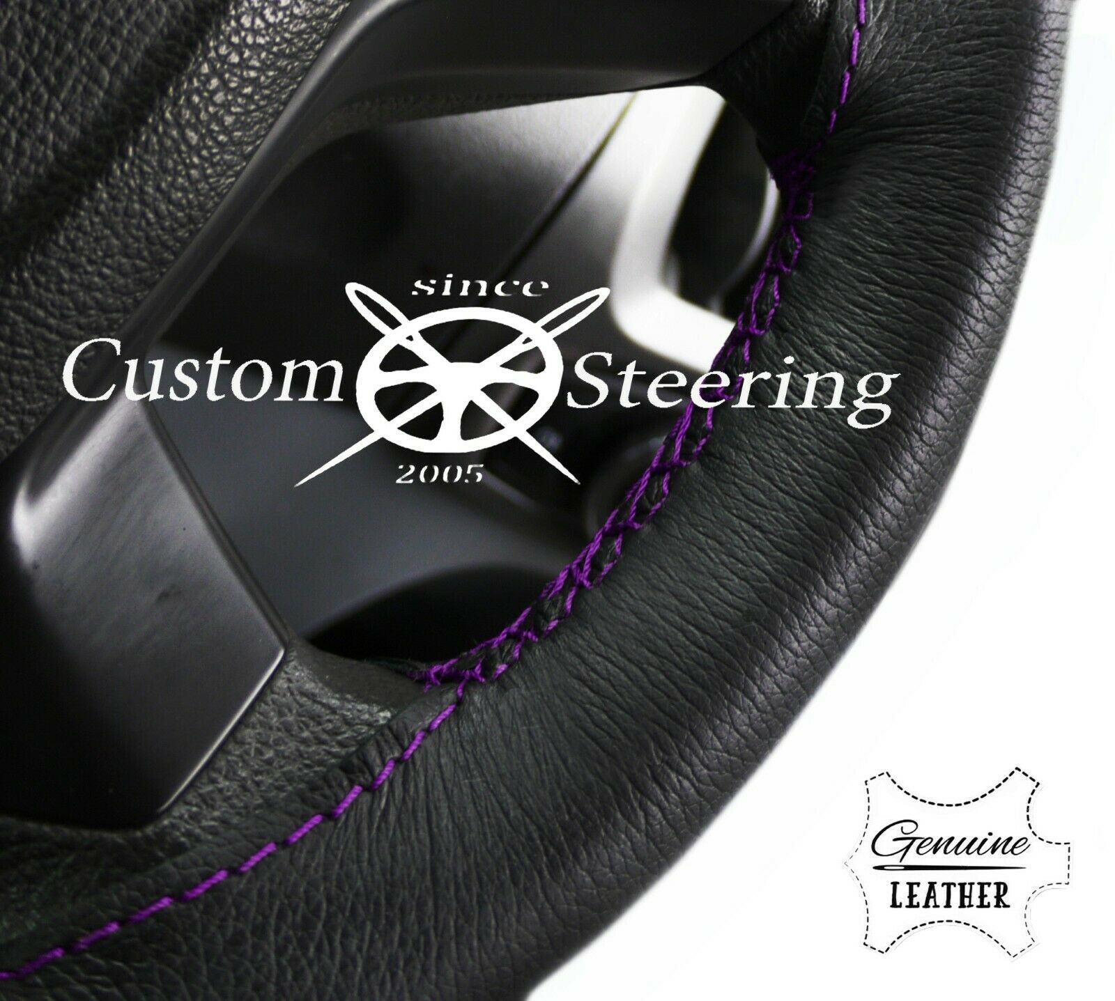 VOLKSWAGEN GOLF MK6 2008-2012 GENUINE BLACK ITALIAN LEATHER STEERING WHEEL COVER PURPLE STITCHING